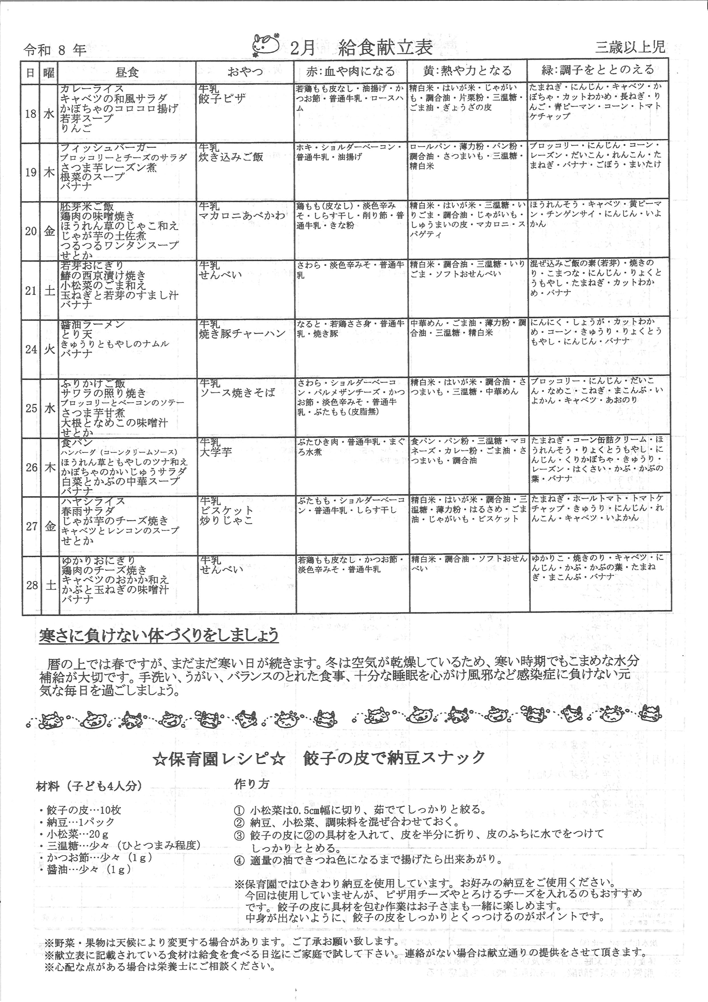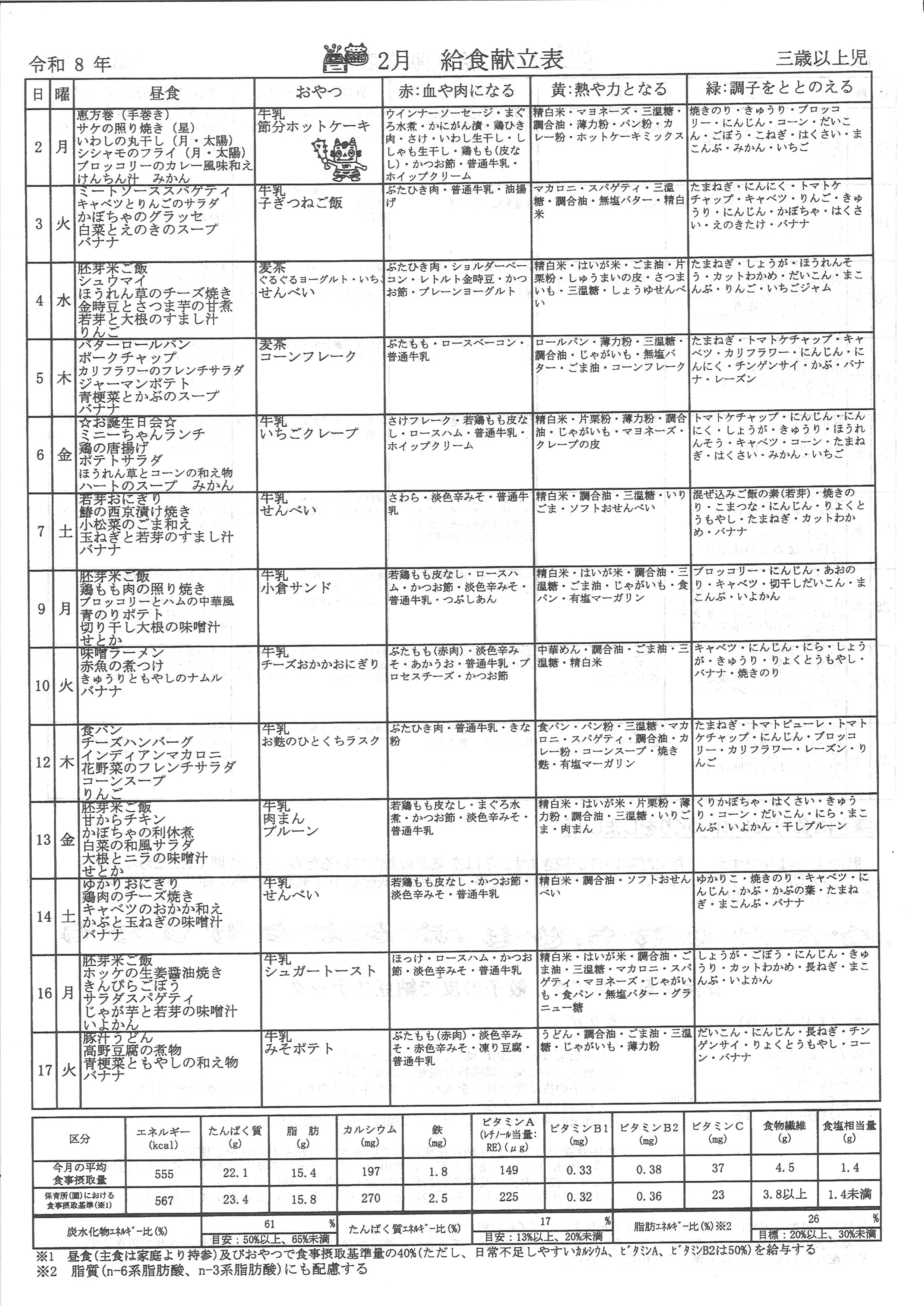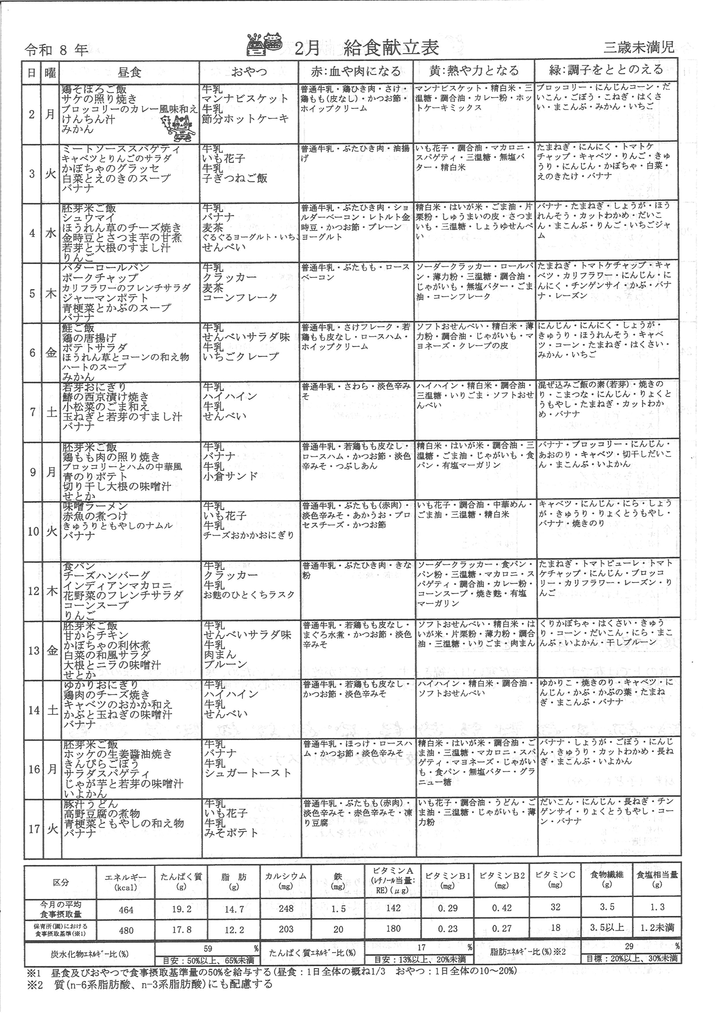・適切な栄養量の供給、成長発達に見合った献立、調理の工夫をしています。